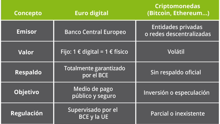 ¿Qué diferencia hay entre el euro digital y las criptomonedas?